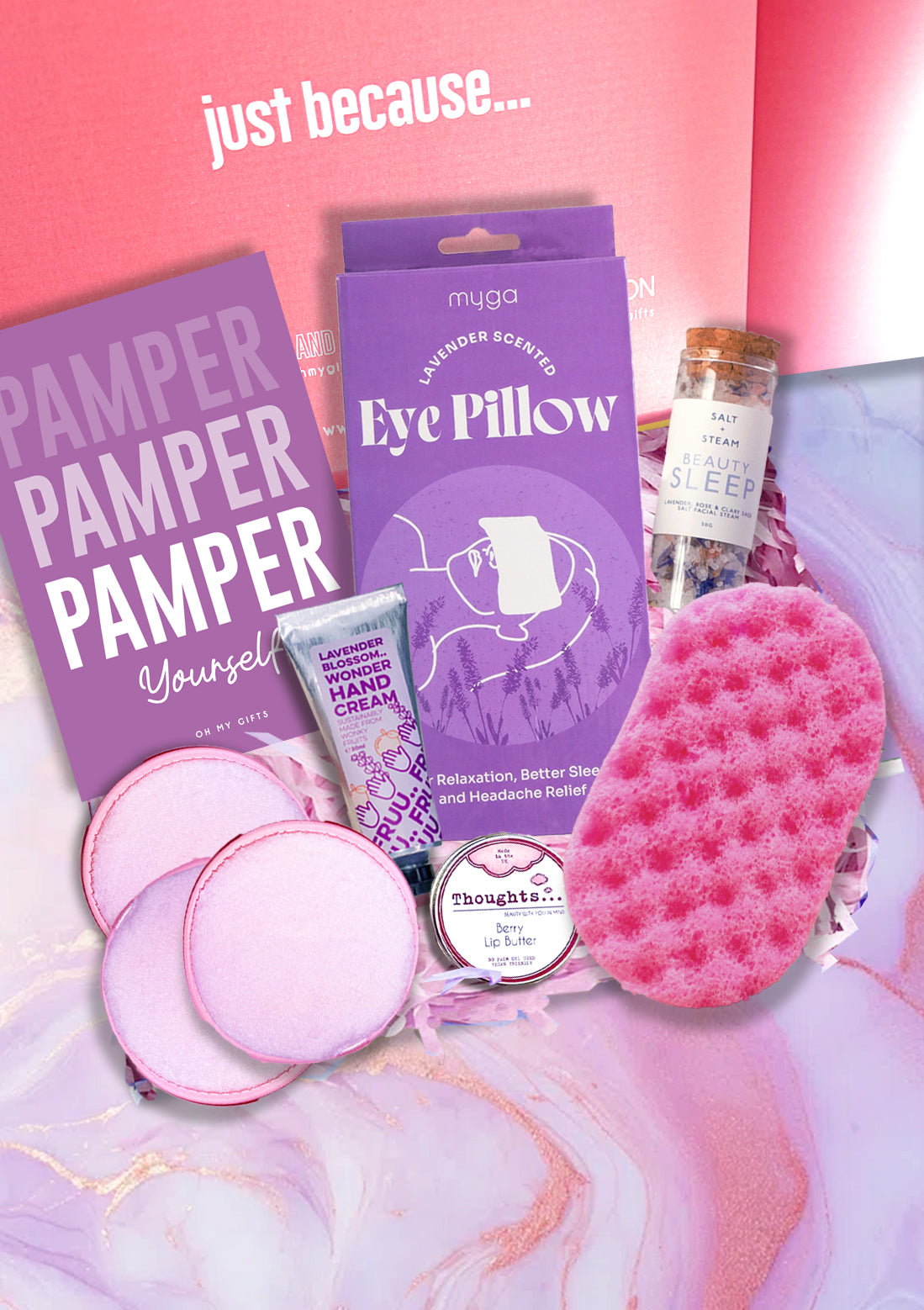 Six beautiful gifts all wrapped together lovingly complete with a pamper postcard and packed in our signature berry OMG Giftbox.