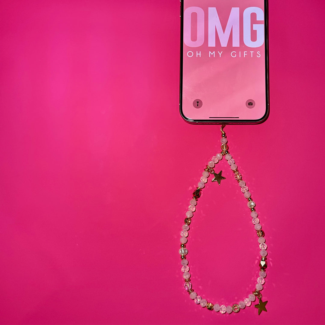 Sparkly Star Phone Chain. This pink and gold sparkly star phone chain not only looks lovely, it is practical too - helping you stopping dropping your phone and finding it in your bag in seconds. We couldn't live without it!